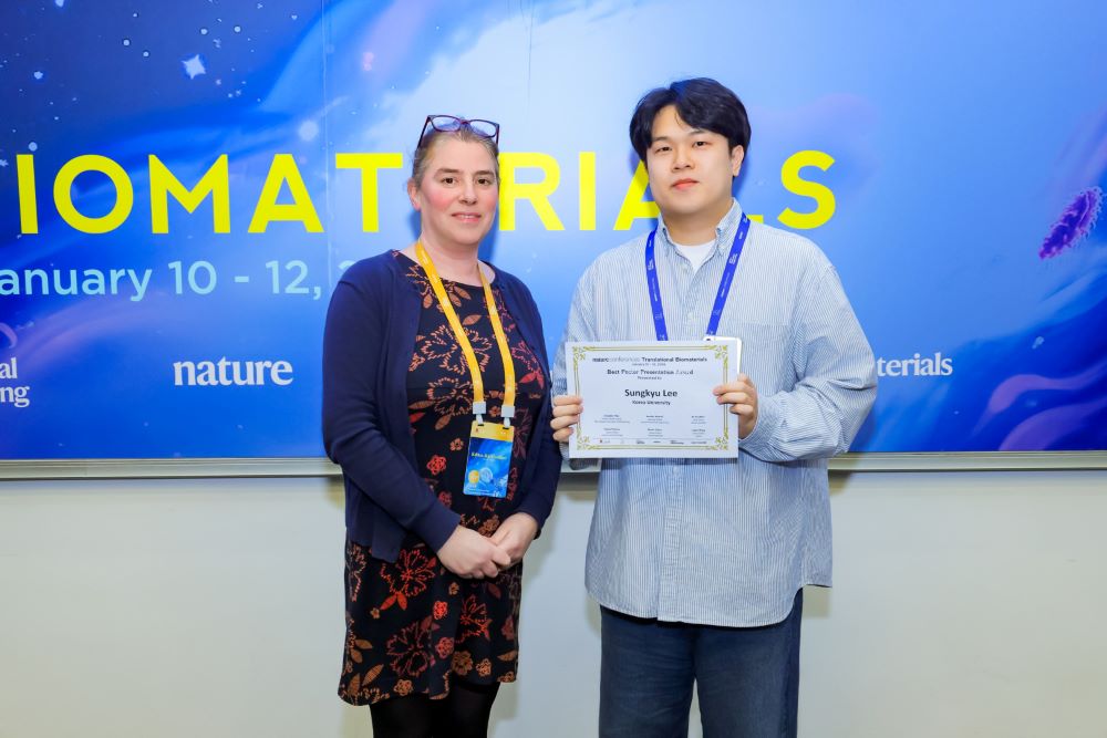 Dr. Sungkyu Lee received Best Poster Presentation Award by Dr. Ali Stoddart, Chief Editor at Nature Materials at 2026 Nature Conference for Translational Biomaterials at CUHK, Hong Kong, China.